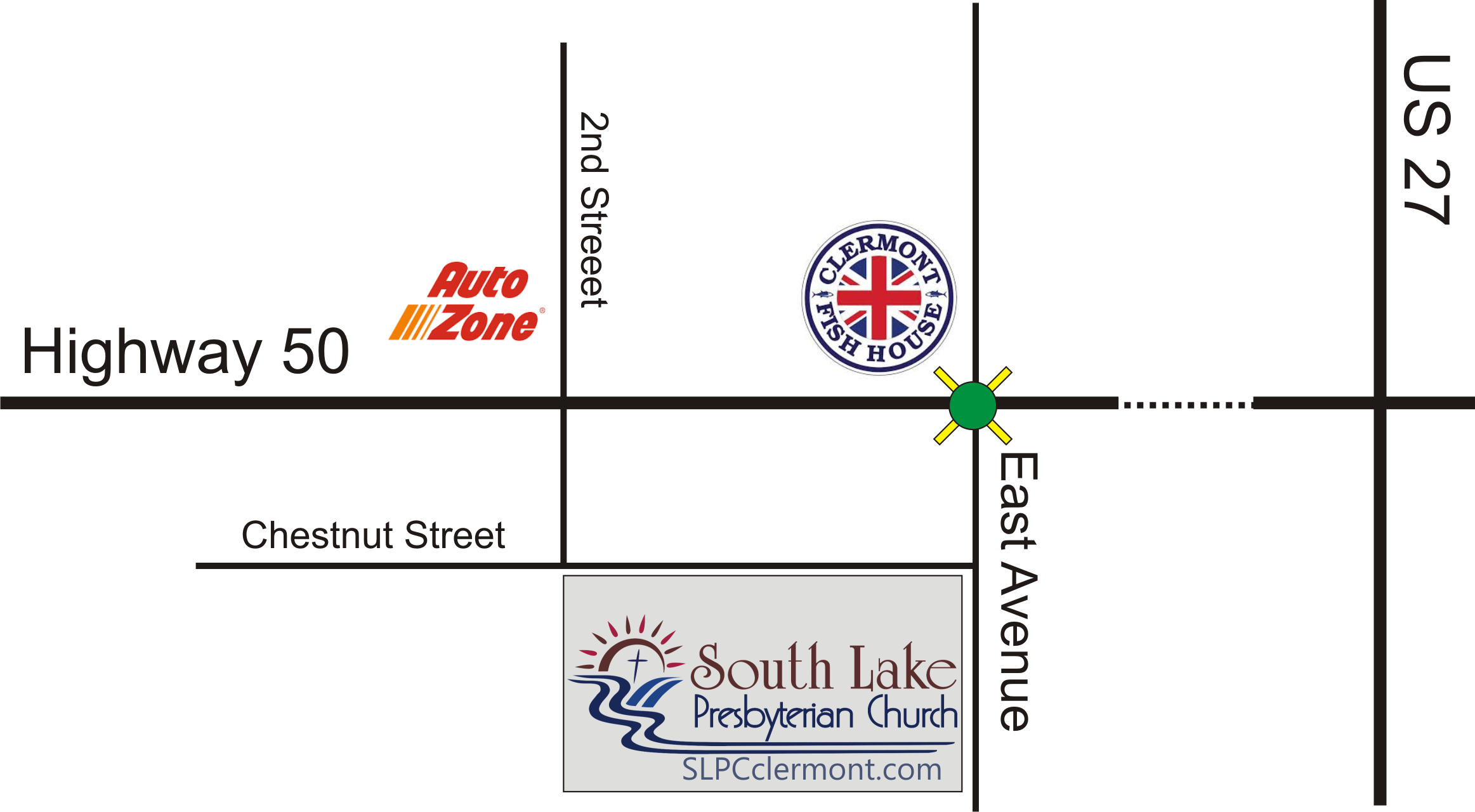 we're located west of US 27 1 block south of Hwy 50
